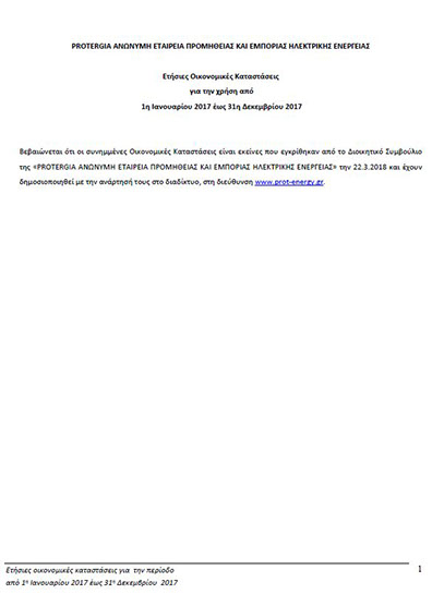 PROTERGIA ΑΝΩΝΥΜΗ ΕΤΑΙΡΕΙΑ ΠΡΟΜΗΘΕΙΑΣ ΚΑΙ ΕΜΠΟΡΙΑΣ ΗΛΕΚΤΡΙΚΗΣ ΕΝΕΡΓΕΙΑΣ