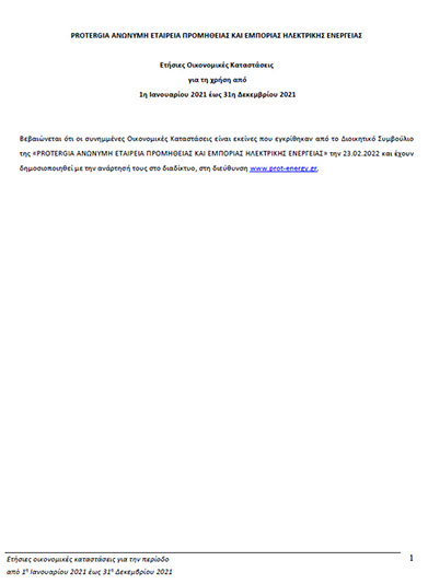 PROTERGIA ΑΝΩΝΥΜΗ ΕΤΑΙΡΕΙΑ ΠΡΟΜΗΘΕΙΑΣ ΚΑΙ ΕΜΠΟΡΙΑΣ ΗΛΕΚΤΡΙΚΗΣ ΕΝΕΡΓΕΙΑΣ